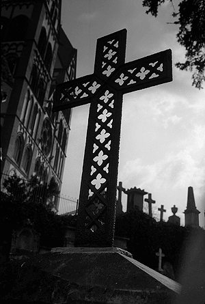 Schmiedeeisernes Kreuz auf dem Friedhof des Limburger Doms. Im Herbst 2006 fotografiert.